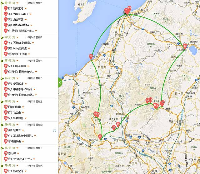 本来新泻出发的话去东北看红叶也是比较顺路的,但是我们想去草津温泉、东照宫很久了,再加上伊吕筑波和秋名山(榛名山)都在不远的地方,奥日光的红叶更是看微博刷屏观察了2年,于是就定下了这么一个“奇葩”的环形路线!和在东京工作的小伙伴一拍即合,开车的人也有了,交通就不成问题了!