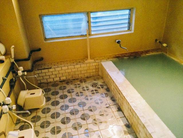 温泉是乳白色,微弱硫磺味,还有半露天的免费贷切风吕,温度70度,受不了需要自己放冷水进去。
