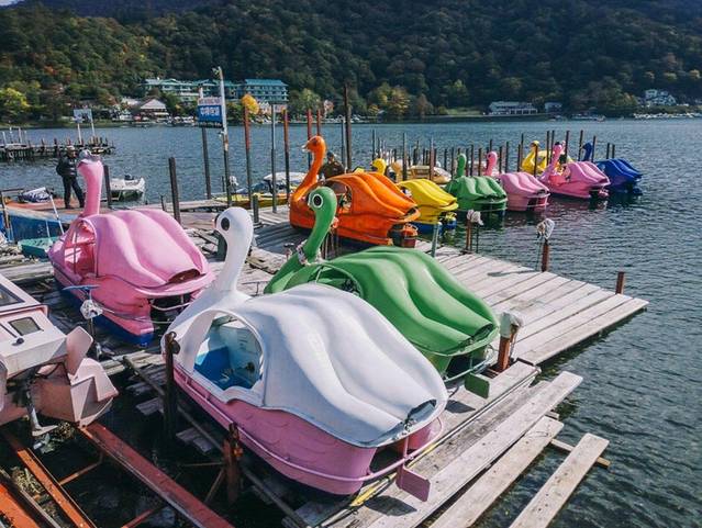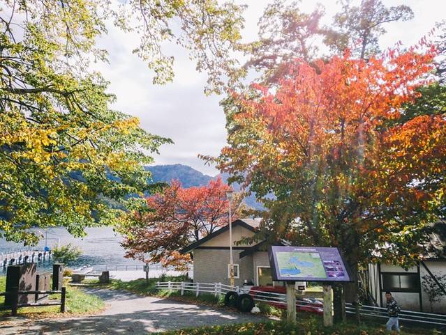 中禅寺湖,这里更冷了,风还是那么大,叶子已经有明显的一半红一半绿的,小鸭子船都在整修重新喷漆,阳光下拍出来很好看。