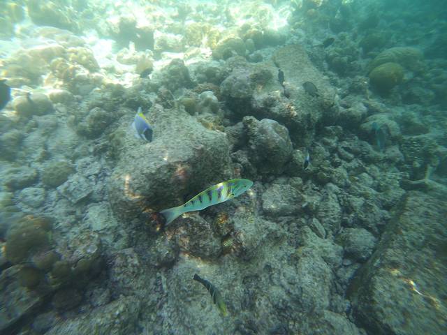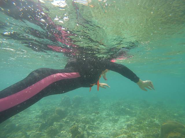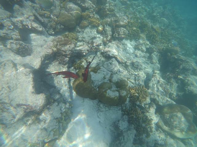 海沟离浅滩很近,可能游着游着突然间就很深了,这时一定要注意,当然如果水性好的,海沟那里的珊瑚和鱼肯定更好,但是如果就像我这种,虽然会游泳,但是对大海还是有恐惧的人来说,奉劝您还是别去了。