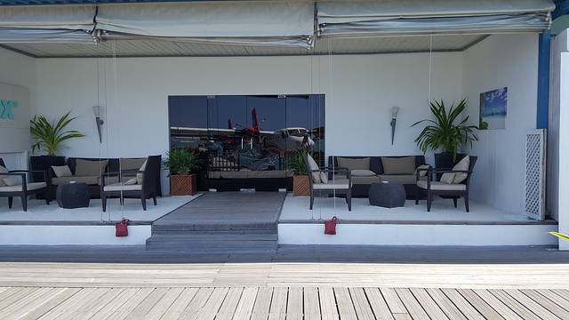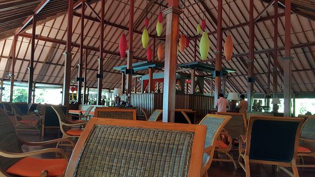 来张水屋全景!左边的是水屋,住的地方,一共只有20间哦,非常的抢手,在中间的位置最好,我们运气爆棚,拿到了807号房间,右边的是休息区,酒吧及吃饭的地方~
