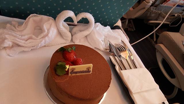 美丽的空姐,挨个给我们发的蜜月蛋糕,还有两杯新航的特调鸡尾酒,味道不错哦~