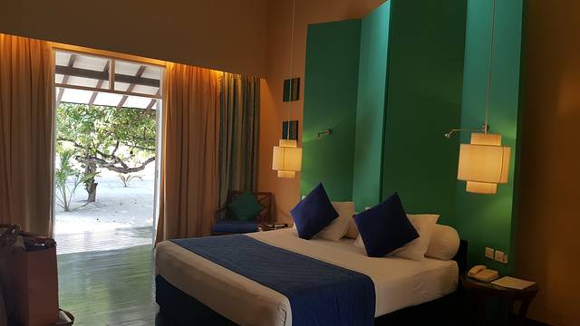 经过一个小时的飞行,终于到我们心心念念的密度帕茹啦!!看到海水太激动,有木有!!下水飞后会有小黑帮你把行李放到你的房间里(记得给小费哦),你就直接跟着管家走就好啦,管家帮你办理入住手续,然后带你转整个岛,告诉你餐厅,泳池,酒吧的营业时间,以及注意事项~密度帕茹没有中文go,但是会简单的英文,大概能听懂就没有什么问题的啦~