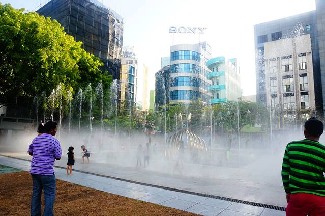 广场中的音乐喷泉,孩子们玩得不亦乐乎~看到这样的景象,总会让人觉得很温暖