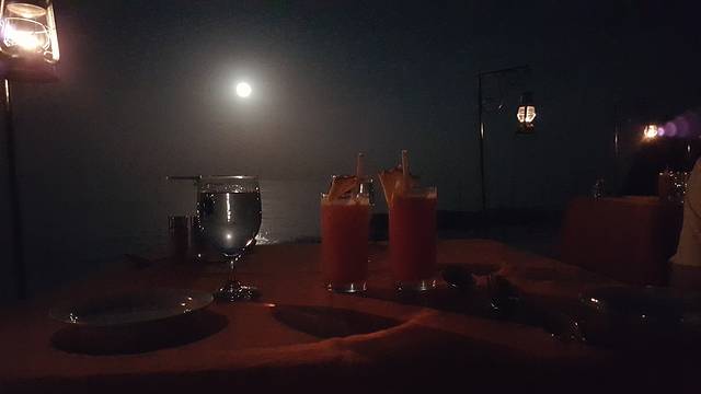 马上要去吃沙滩晚餐喽~沙滩晚餐,顾名思义,就是在月光下,沙滩上吃晚餐,管家会打电话通知,记得带瓶花露水出门,不然浪漫是浪漫,把蚊子喂饱就不好了