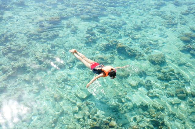 这张纯为拍照,别像我这样直接就下水了,不穿潜水袜,脚很容易被珊瑚刮伤的,同行的一个女孩就为拍照,美美的穿着比基尼就下去了,也没穿救生衣,结果一下水就被刮了两道子,血直接就流出来了,很危险!