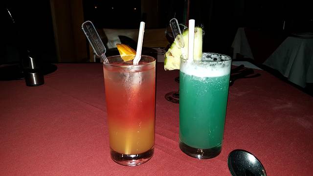 不知道喝啥,最好的就是找小黑让他看着给你来,我让小黑帮我俩调的鸡尾酒,很好看,很好喝的,左边是给苏先森的,酒多一些,右边是给我的,基本上没什么酒味!大大的赞~