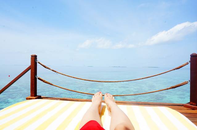 浮潜后,冲个澡,躺在外面的床上,慵懒的看着那天,那海,享受……
