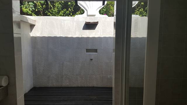 露天淋浴!话说,小妞儿我刚到沙屋,对露天淋浴甚感好奇,觉得大热天在这淋浴肯定很爽,然后小妞儿就去淋浴了,效果确实不错!正在洗着澡澡唱着歌,突然觉得脑袋上有声鸟叫,抬头一看,我的妈呀,一直颜色艳丽,黄绿相间的鹦鹉就在我的脑袋上喝水,而且喝的有滋有味,还没有被我的尖叫声吓跑,一直在悠哉悠哉的喝呀,知道喝饱为止,才飞走!从这以后,我就踏踏实实的转战室内淋浴了