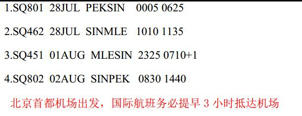 我们的航班往返时刻表,基本上新航往返差不多都是这个时间的。大家注意去程时时间比较充裕,所以建议大家尽量在这个时候去购物哦,抵用券也在去程领哦,抵用券往返只能领一次(抵用券在ishopchang1处领取,需要两个人的护照和去程整个行程的登机牌,因为抵用券只有在转机的情况下才可以领取的哦,你要保存好从北京飞新加坡的登机牌,把从北京飞新加坡和新加坡飞马累的登机牌都出示给工作人员)。
