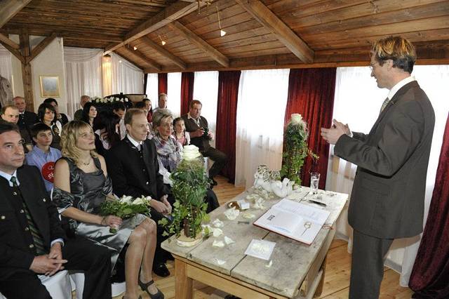 乘坐婚礼马车抵达之后,高山号角将用它轻柔的号声迎接您的到来。接着出发去婚姻登记处或圣母堂(Marrienkapelle),您和您的伴侣将在那里再次相互表白永恒的爱情。婚庆典礼由您和婚礼主持人共同安排。