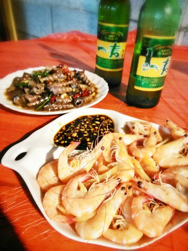 晚上回到思明南路,去厦大附近的大排档吃宵夜。白灼海虾,炒丁螺,炒蔬菜,当然冰啤酒是少不了的啦。