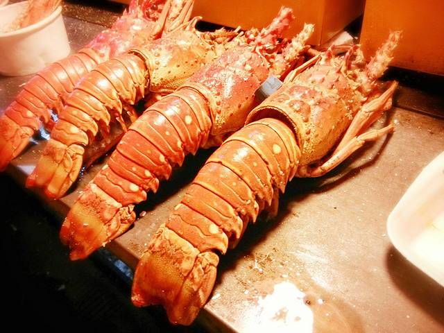 烧烤摊都有的大龙虾和大螃蟹,体型和价钱挂钩,有点儿贵。