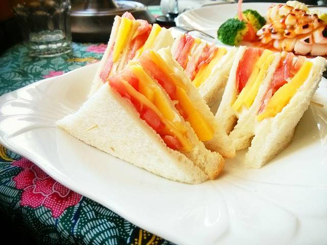 芒果+番茄片+三明治,这组合就不会是难吃。芒果略酸,但很清爽很开胃。