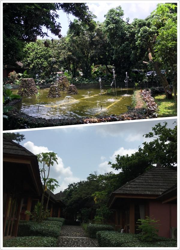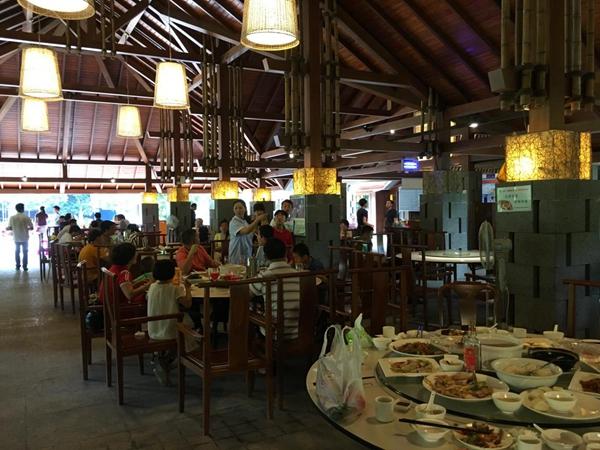 移步向前,前方的假山树石和亭台楼榭,为美食街增添了一抹园林景观的精致之感。