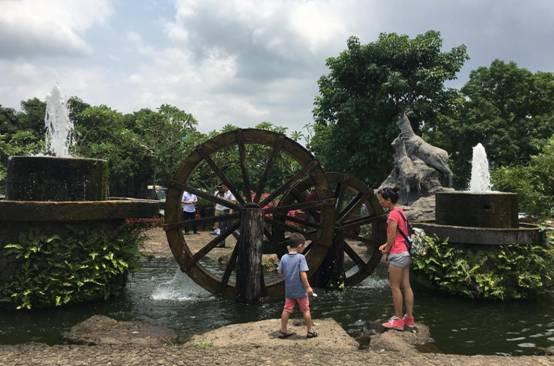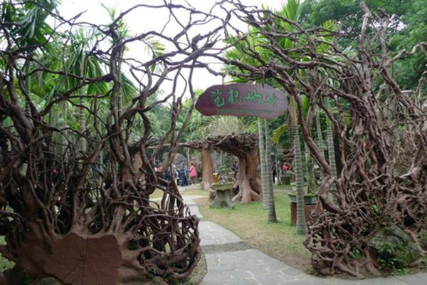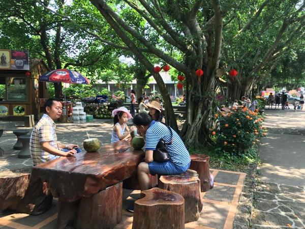 自恋点说,我是文艺小青年,对这种有文化底蕴的地方最是青睐有加,收拾好行囊,大约上午十一点钟,我和伙伴们便在路边椰影的簇拥下来到了目的地。的士在海口琼山区江桥头停南渡下,下车走几步就发现有个花卉大世界,乍一看,还以为是卖花卉的地方,其实不然,“柳暗花明又一村”的是,在花卉大世界的里面,有一家被评为国家“3A”级景区的“民族风情美食街”。