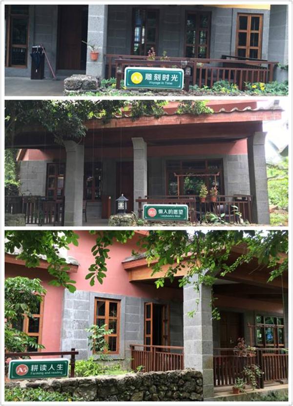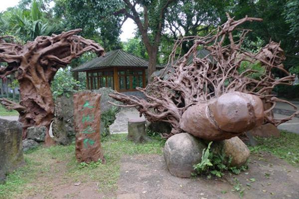 接着向前走,我们看到这些雕像很疑惑,这是什么?看了文字介绍才知道,这些都是黎苗族的乐器。黎苗族的乐器源于生活,种类诸如叮咚、哩咧、哔哒、鼻箫、口弓等等,这些陌生的名字与千奇百怪的乐器,真的可以让你大开眼界。
