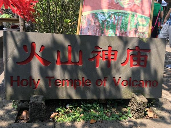 眼帘的是具有黎苗特色的建筑群,不知为何,我突然想起故宫的建筑,殿宇楼台,翘角飞檐,高低错落,只是各有千秋。侧门的前面即是停车场,对自驾游的游客来说很方便。