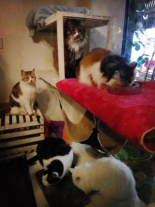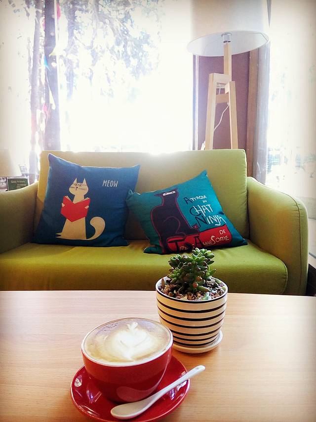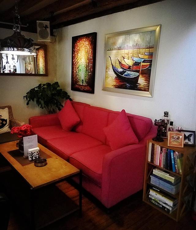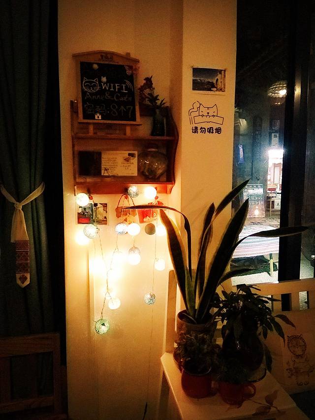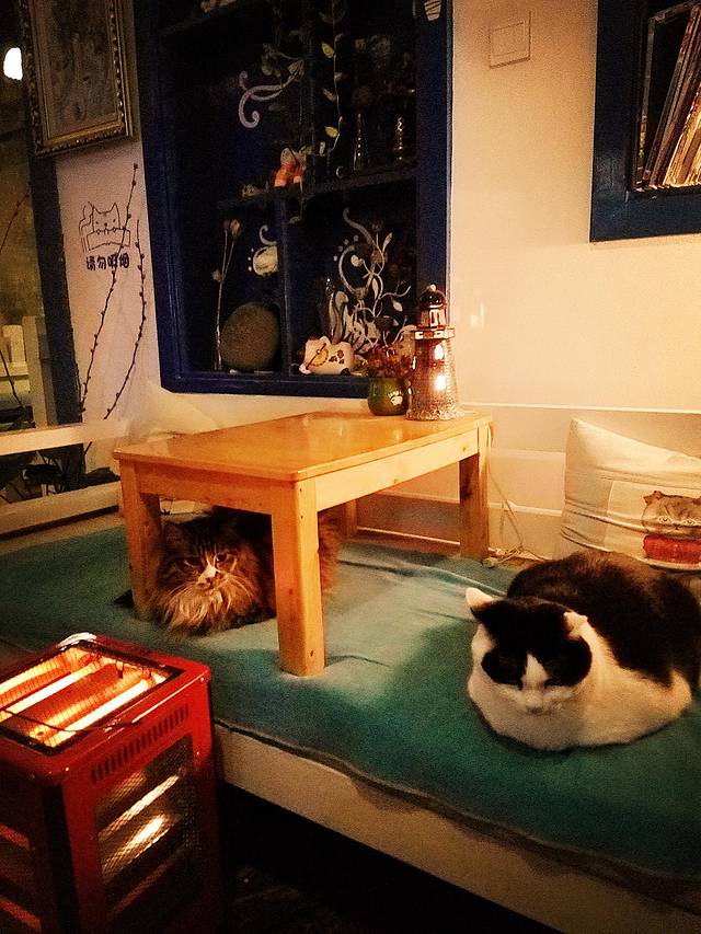 晚上出去逛,看到一个叫“猫窝”的咖啡吧,进去坐坐喝咖啡