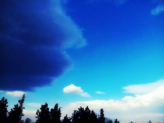 同一画面里蓝天下的乌云和白云