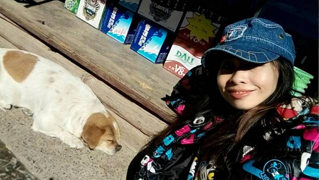 束河古镇里懒洋洋烤太阳的小狗,很可爱