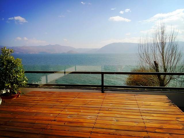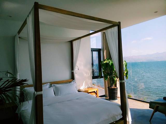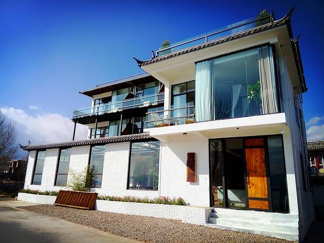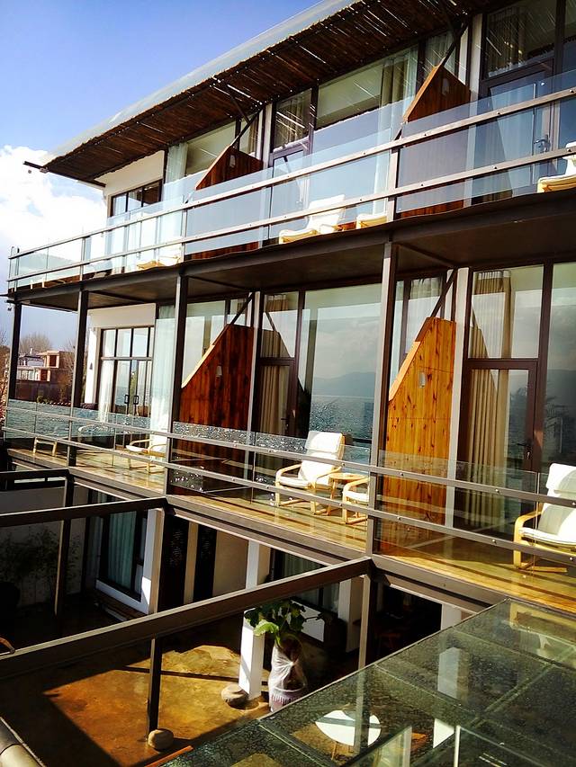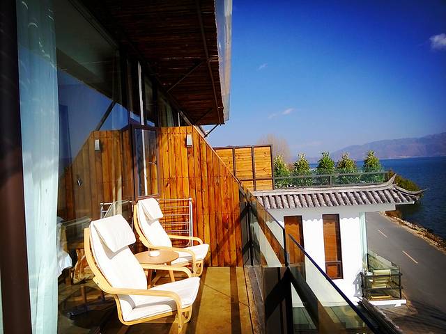 这个在环海西路上很漂亮的客栈“木心”,是小苏朋友开的,不久前才装修一新,我跟着小苏进去看了看,感觉非常有品味,超级无敌海景房让人赞叹不已,可眺洱海望苍山,赏晨曦日落,美不胜收,不过价格也不算便宜(PS:以前没到过双廊,一直想像双廊面朝大海,春暖花开的美丽,当时还以为电影“心花怒放”里让人看了就心生喜欢的洱海客栈是在双廊拍的,小苏说其实是在大理古城和环海西路拍的,后来看到真实的双廊已经变成到处密密麻麻建客栈的大工地,不免让人失望,其实想来双廊还比不上环海西路上这些客栈,更安静更让人放松)