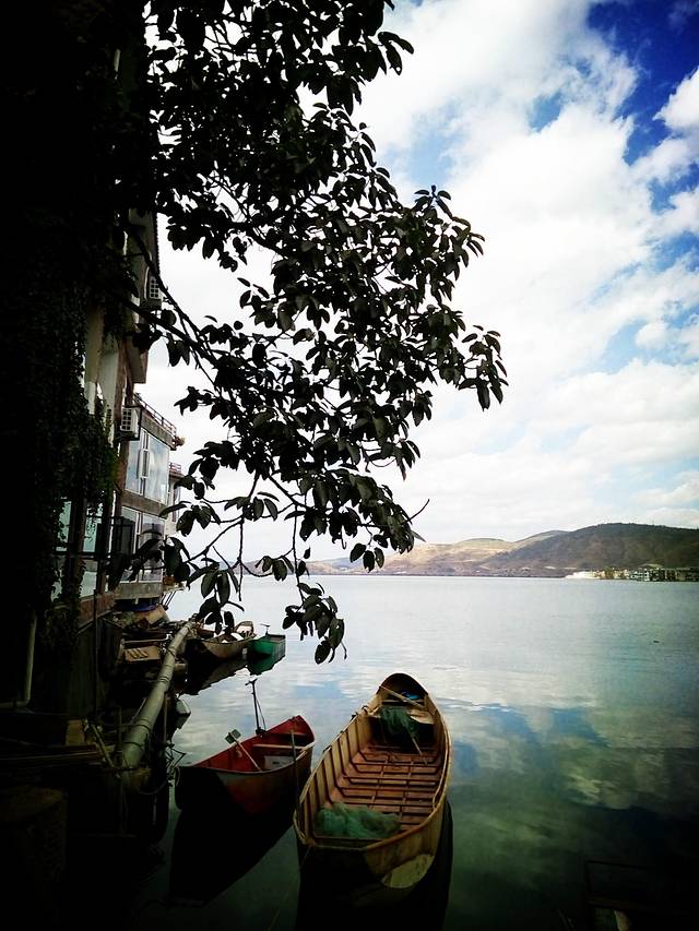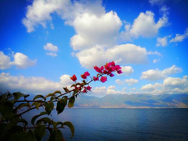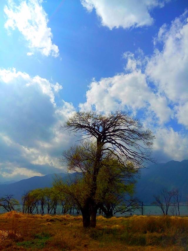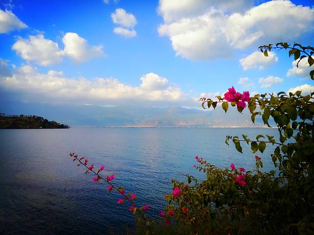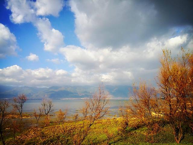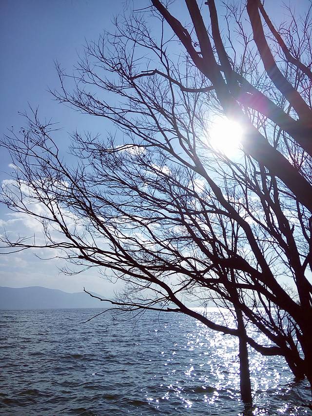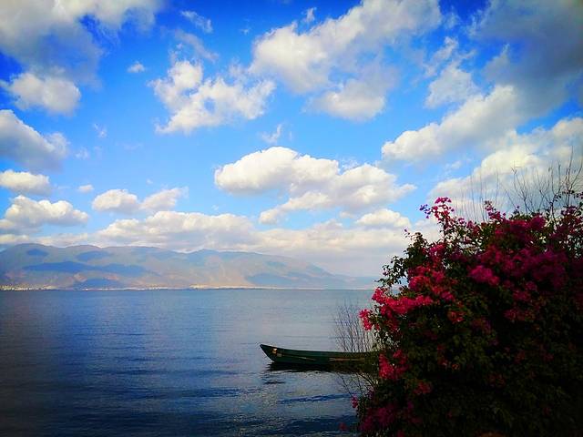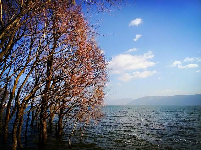 洱海风光无限的环海西路,强烈推荐到洱海一定要环海游,欣赏蓝天白云下水中亭亭玉立的树,波光粼粼的美景,可惜用手机拍的效果没那么好,其实非常美