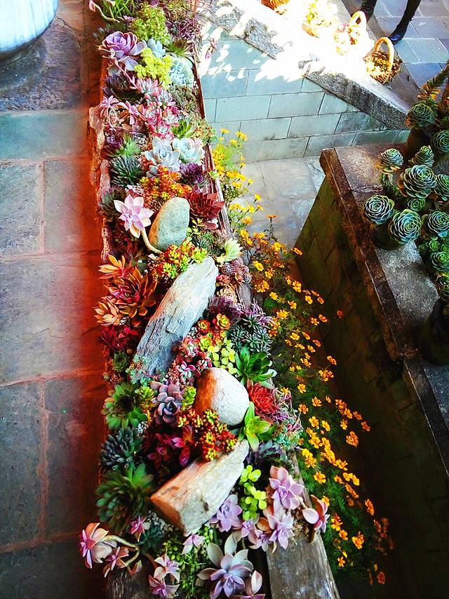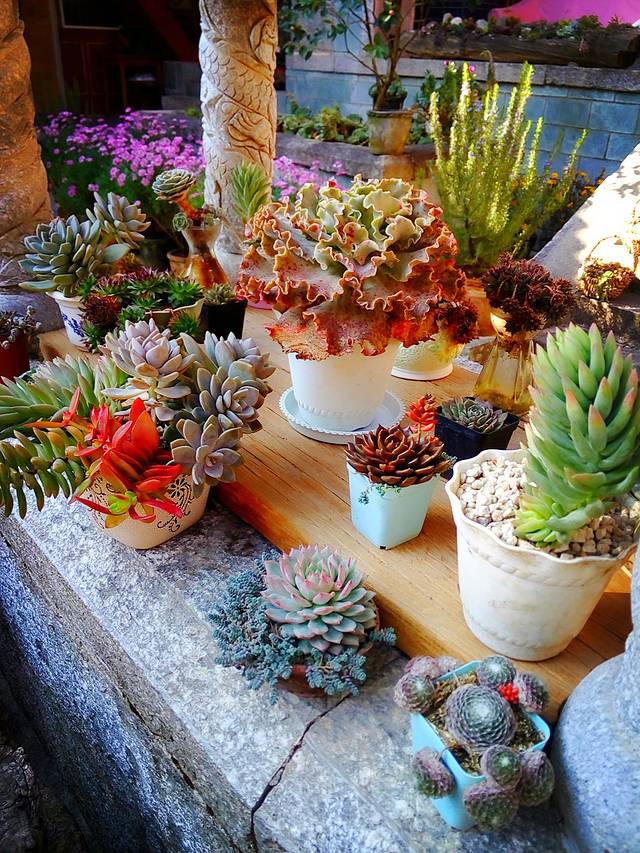 庵里无处不在长得很茂盛的花花草草,特别是有非常多的多肉植物,都长得生机勃勃,欣欣向荣,看似随意的摆放,其实很有禅意,让人觉得心情舒畅放松自在