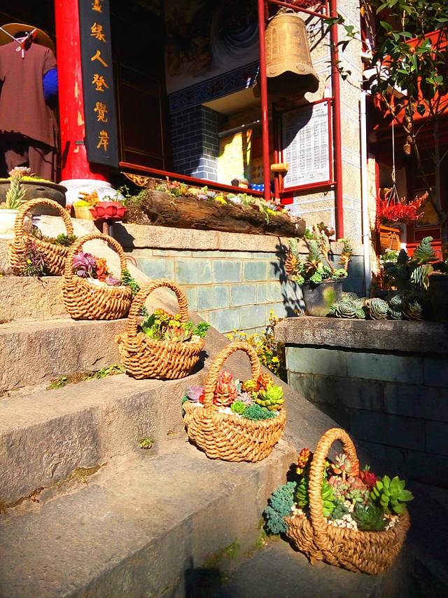 我们顺着丽江古城南门往城中间走,游客没有我上次来的时候多,还算好