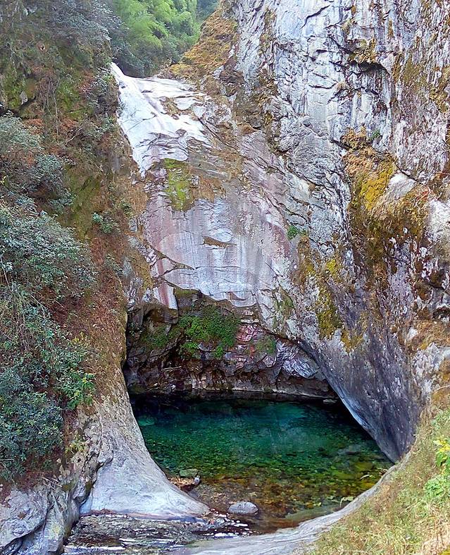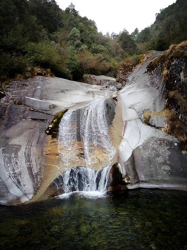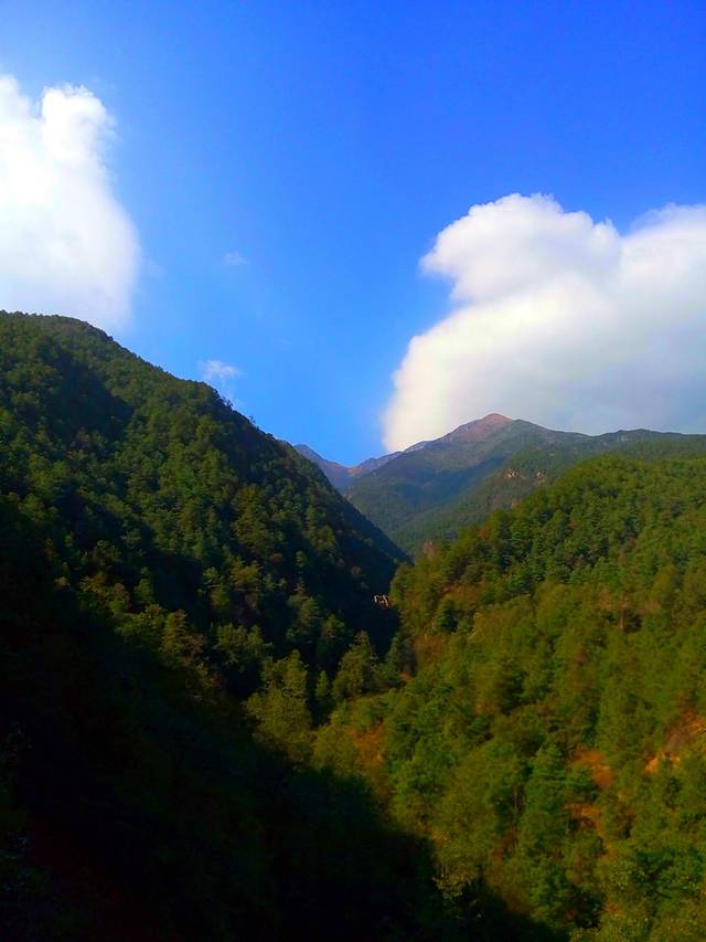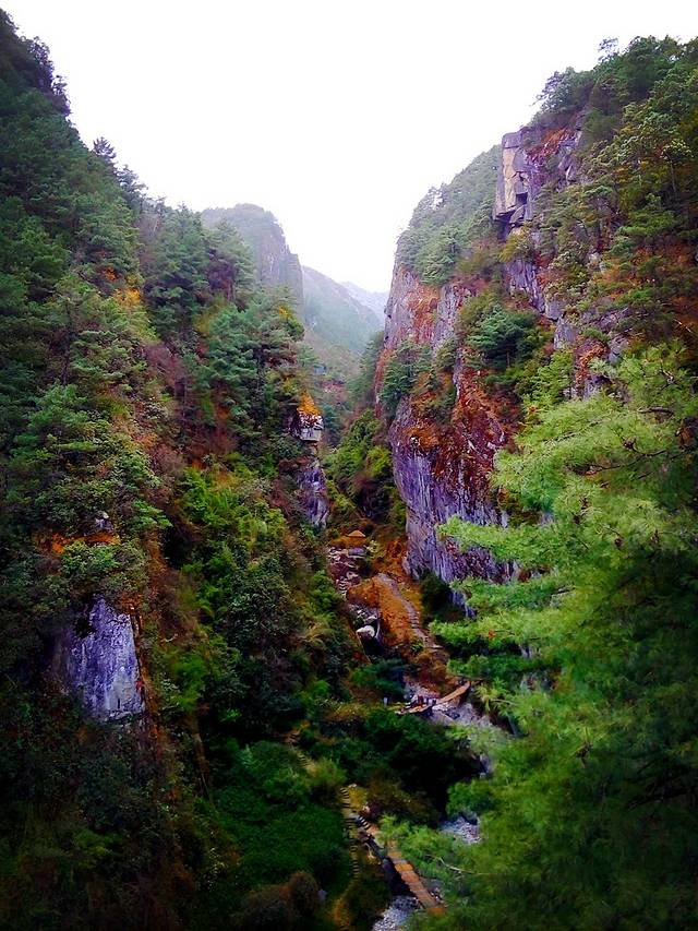 爬到一个观景台,小苏介绍后面的山还有一条山谷,更原生态,不过我们有老年人一路,走不了那么多,去不了,只有平着走一段玉带路再坐索道下去