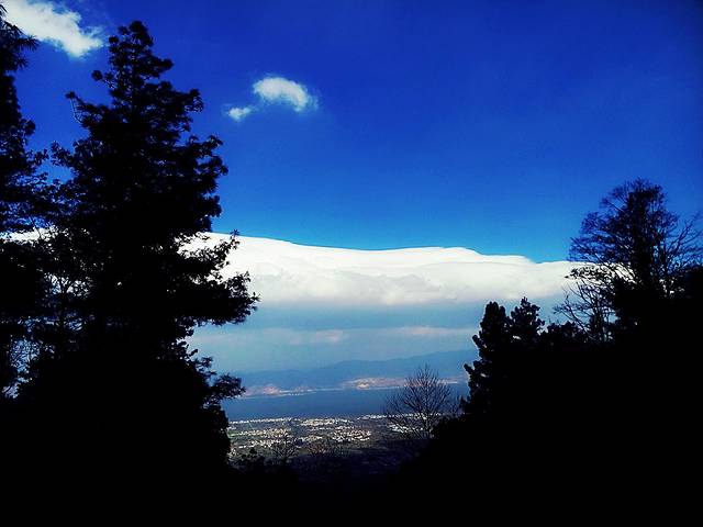 在玉带路上望见远处的大理城和洱海