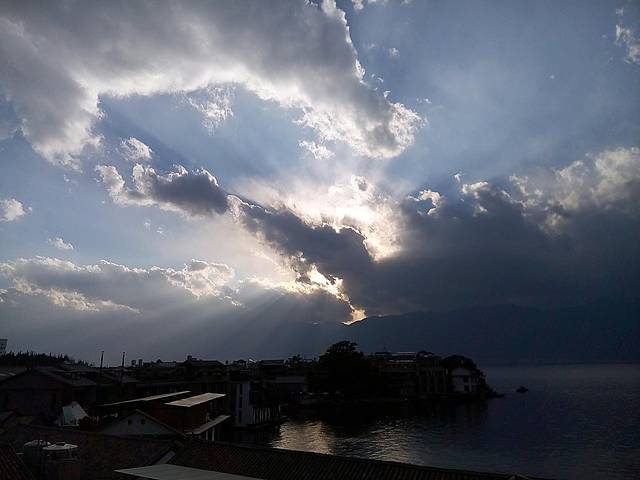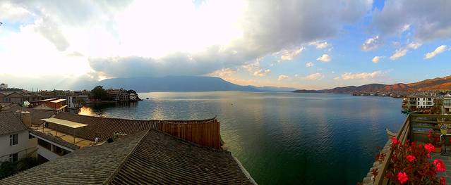 屋顶环拍的洱海