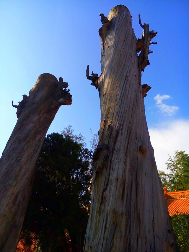 两棵很大的枯树站在寺中间,很特别,至少有上千年的历史了