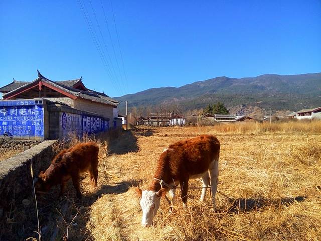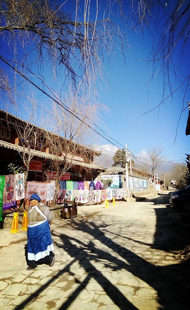 一边骑车一边欣赏风景还时不时停下来拍照,也没过多久就到了白沙古镇,我们没去看比较有名气的白沙壁画,因为要交80块钱的丽江古城维护费还要再买好像是30块钱的门票,所以直接去了白沙古镇逛逛,古镇不收门票