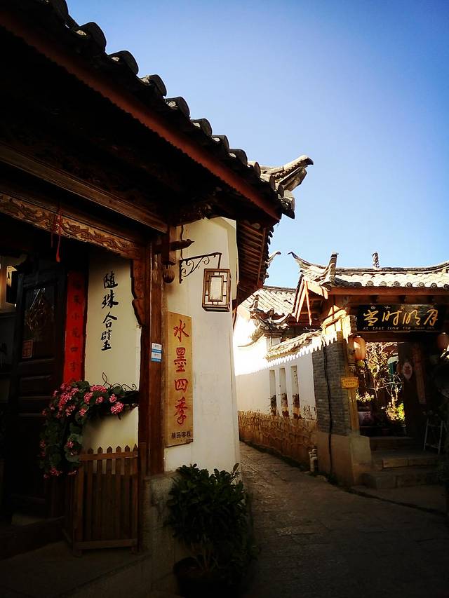 清晨出客栈去古镇街上晃荡,几乎没有人,空空荡荡,只有耀眼阳光,光滑青石板路,静怡安逸