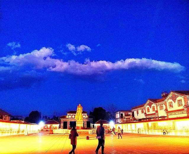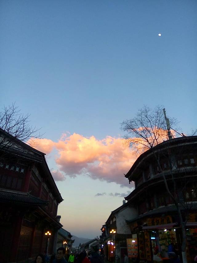 傍晚的大理古城,华灯初上,还有很飘逸的云