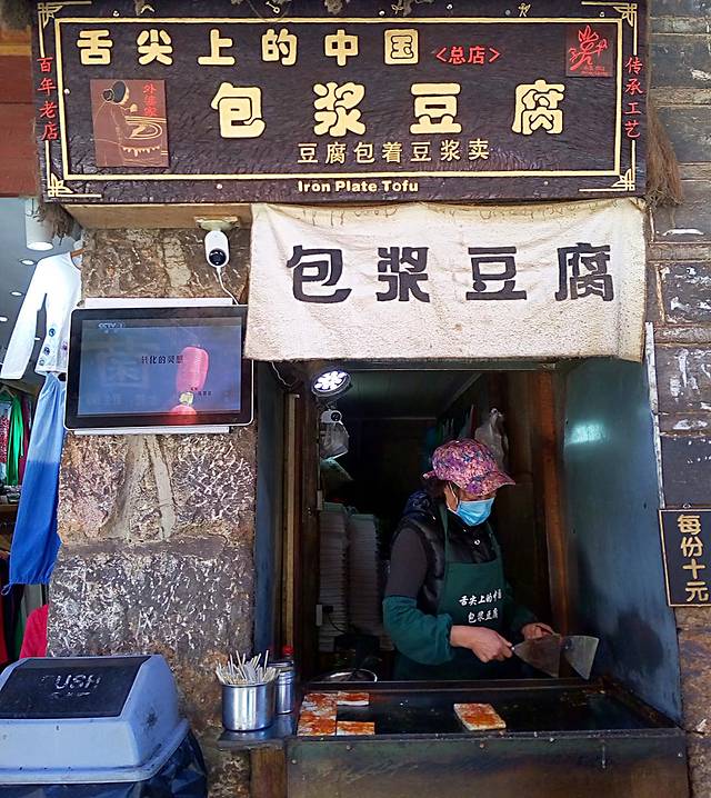 特别推荐束河古镇这家小小门面卖的包浆豆腐超好吃,里面包浆的豆腐非常嫩也很入味,好吃得我们吃了好几份