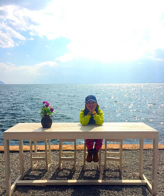 到了双廊,我们说想去双廊比较出名的“海地生活”拍海边的长桌凳,小苏说他给我们带路去吧,那个地方不好找,他第一次来都没找到,第二次才找到。还好有小苏带路,七拐八拐穿街进巷才到达,大家当然要拍个够了,非常感谢小苏的一路陪伴