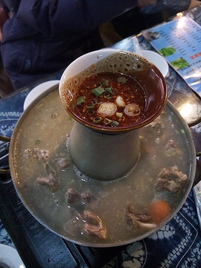 中午找了一家古城里好像叫“纳西饭馆”的店(忘了拍店的照片了)吃的丽江挺有名气的腊排骨,我要在这里提醒大家,这个店家看着忠厚,其实很坑人。当时很热情的说我们五个人来个中锅的腊排骨再加点蔬菜就够吃了,他家中锅的腊排骨才68,当时觉得挺便宜,结果锅上来一看,也并没有多少,排骨味道一般,不过调料味道不错,加了一些蔬菜吃了些米饭,结账的时候用计算器给我们算了200多,我们大吃一惊,他说米饭一个人10块钱,只是菜单上没写出来,真是无语了,而且我们发现他的计算器也有问题,加出来的钱比我们用手机算的要多,后来跟他争论一阵,收了150,算起来还是让他宰了,所以以后到丽江古城这家店最好不要光顾,好像在七一街那一带(PS:吃一堑长一智,提醒大家在古城里的店里吃饭,最好先问清楚米饭收不收费)