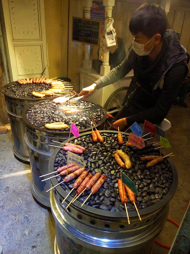 旁边不远有家烤香肠店,围着等着买的人挺多,晚饭吃得太饱,没买来试味道