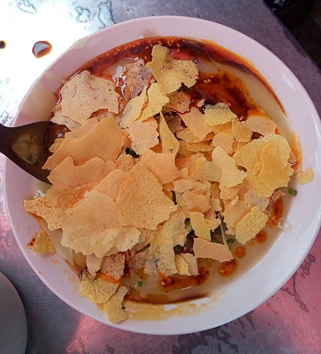 这个是豌豆粉,感觉类似重庆吃的油茶,不过又不太一样,上面放的锅巴不够酥脆,调料也比较重口味,不过下面的羹倒是非常细腻顺滑,而且5块钱很大一碗