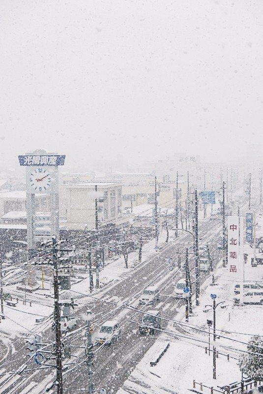 然而开始暴雪,又不敢单独去车站的路于是只好在车站附近觅食。