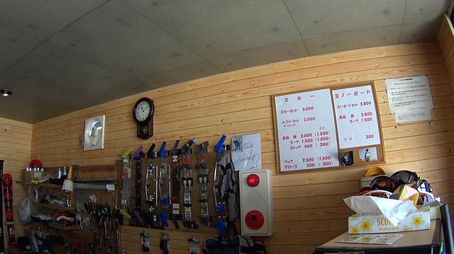 我们租的滑雪板套件是3000,包含靴子+板子+杆子+手套