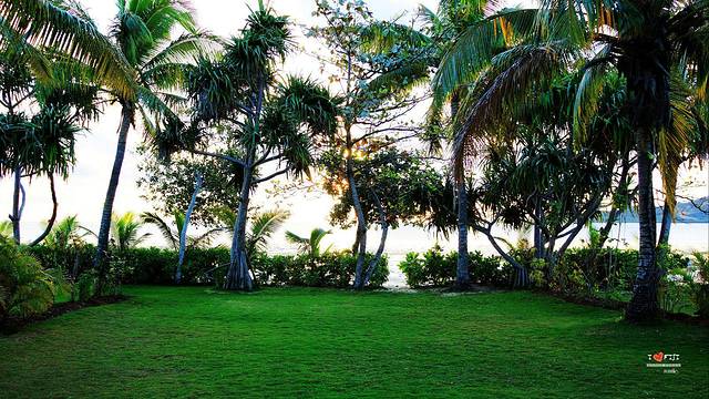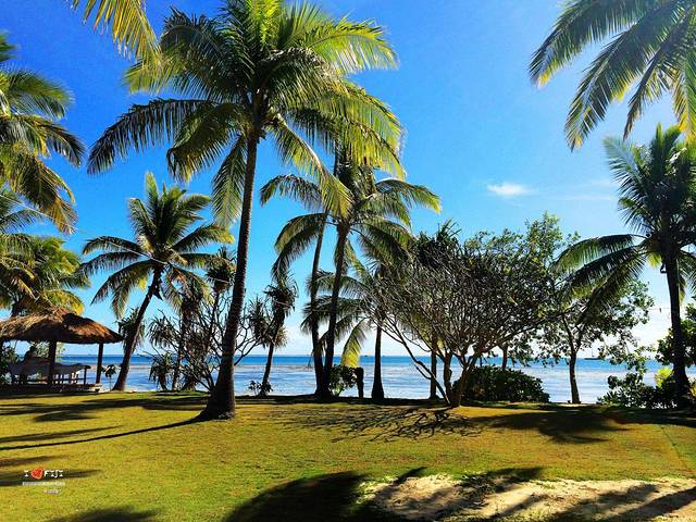 Check-in啦!美丽的斐济姑娘带着我们去我们的房间。沿途的美景。