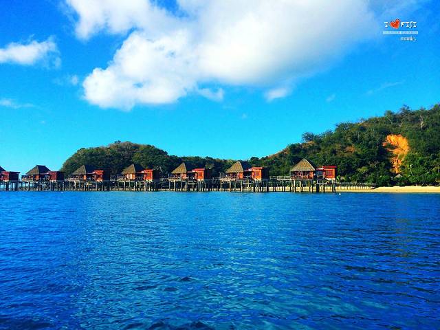 途中还要去各酒店接客人。这个一看就知道是著名的LIKULIKU。斐济唯一的水屋度假村嘛!这里不像麻袋,为了保护珊瑚,斐济是不兴造水屋的。