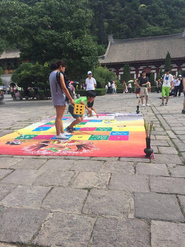 出了御汤遗址博物馆,景区在搞活动,我们玩了一把这个大富翁游戏,哈哈,我是第一个走到终点哒!上面的那个小朋友是在接受惩罚,蛙跳10个。