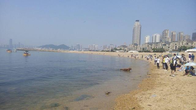 星海公园的海水相对还是比较干净的 ,人少不吵,很适合野餐:在星海公园有海上蹦极,很遗憾,我没胆子参加。不过从上午开始就有许多勇士开始排队,体验海和速度带来的快感。