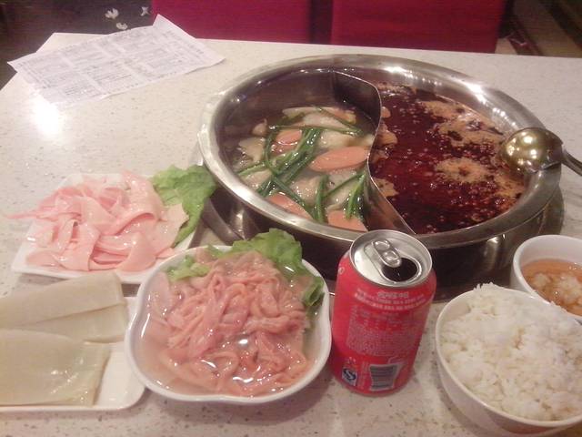 找个一家比较火爆的 排了一会儿队 终于吃上了 红锅麻辣够味 清汤味道鲜美 基本上没在清汤里涮过 但是把清汤里的鲜蘑都吃了 哈哈 今天点的是没吃过的黄喉和鸭肠 和特别喜欢的苕皮 这边苕皮特好吃 黄喉鸭肠都比较有嚼劲 吃到最后牙都疼了 最后还是吃撑