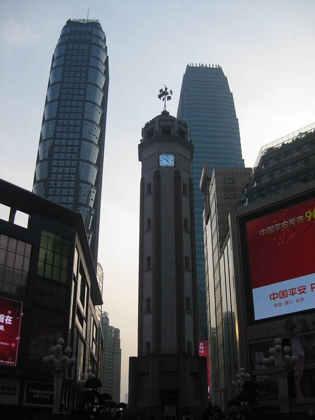 白天的解放碑 周围都是大型百货商场