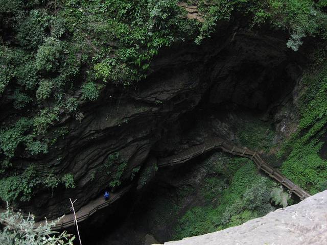 天生三桥很壮观 是变四和黄金甲的外景拍摄地 有电梯往下走很好 然后走一段阶梯往下 中途遇到也是独自旅行的北京女孩申申 于是搭伴前行 拍照 聊天 聊得甚愉快